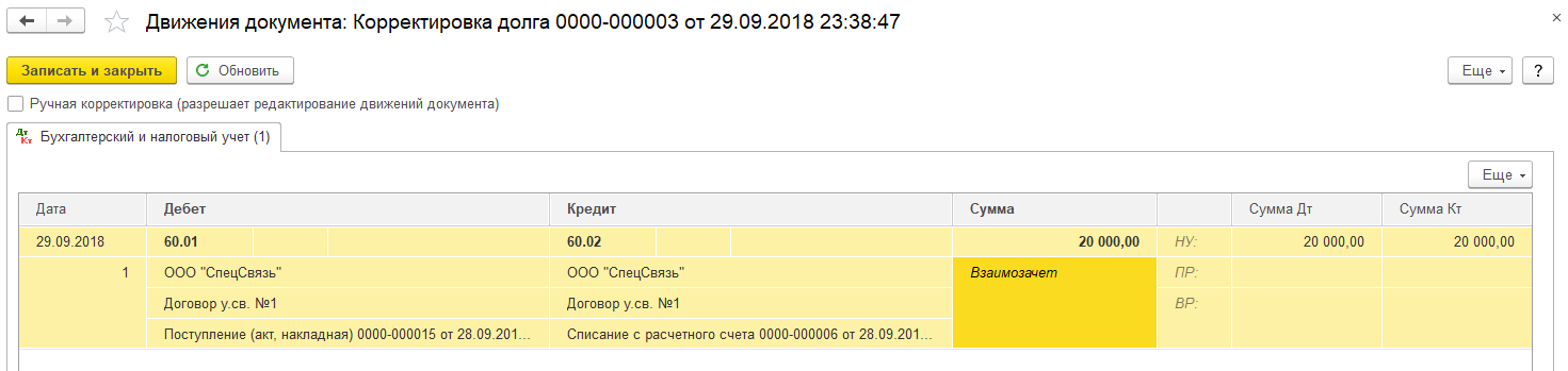 - Полный взаимозачет, в результате которого задолженности контрагентов сводятся к нулю;