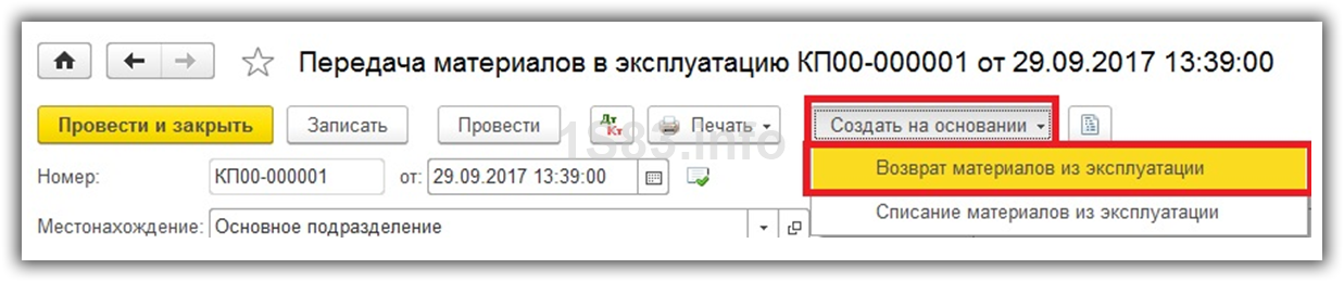 Документ возврата их эксплуатации можно создать на основании передачи материалов в эксплуатацию.