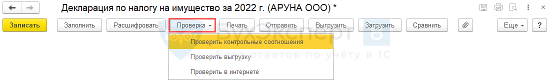 Проверка и отправка декларации по налогу на имущество в ИФНС