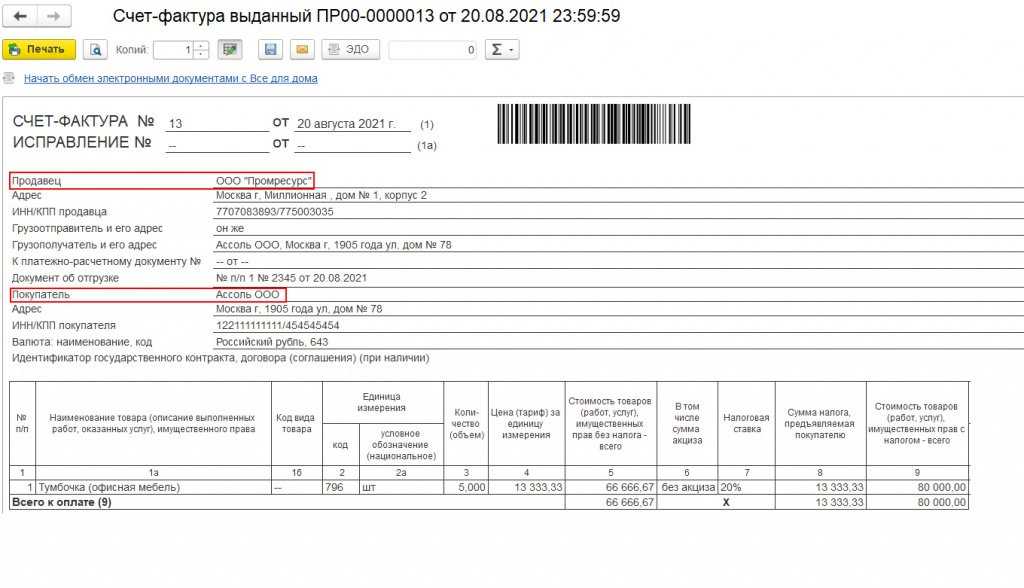 Перевыставление счета-фактуры на реализованные товары