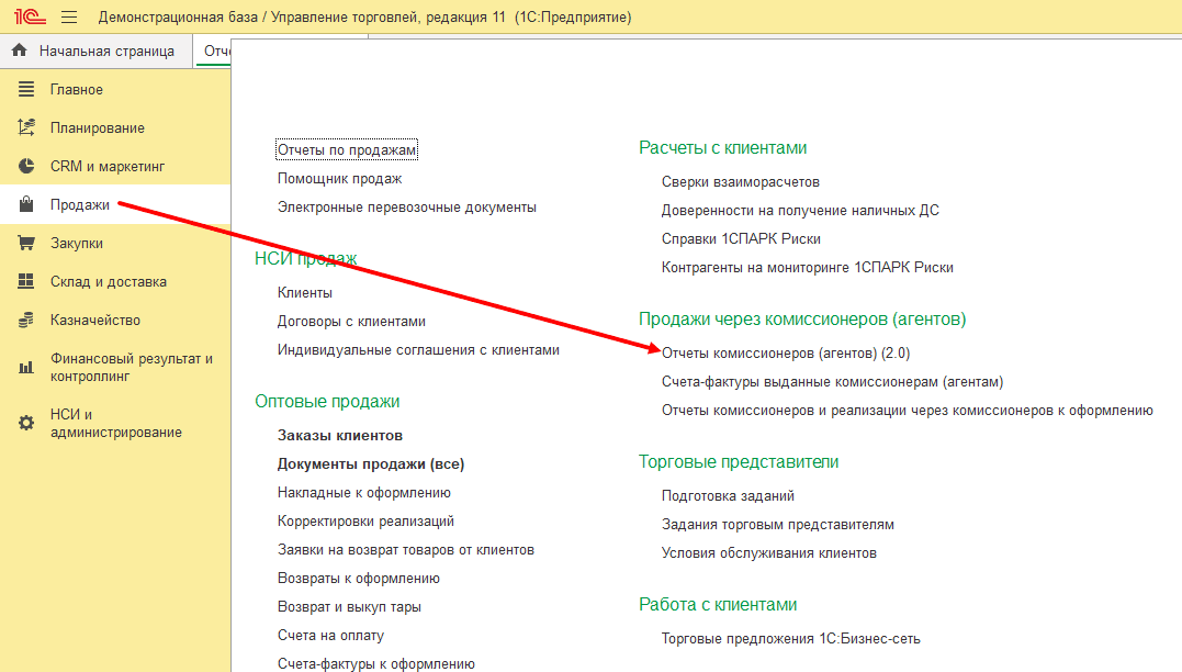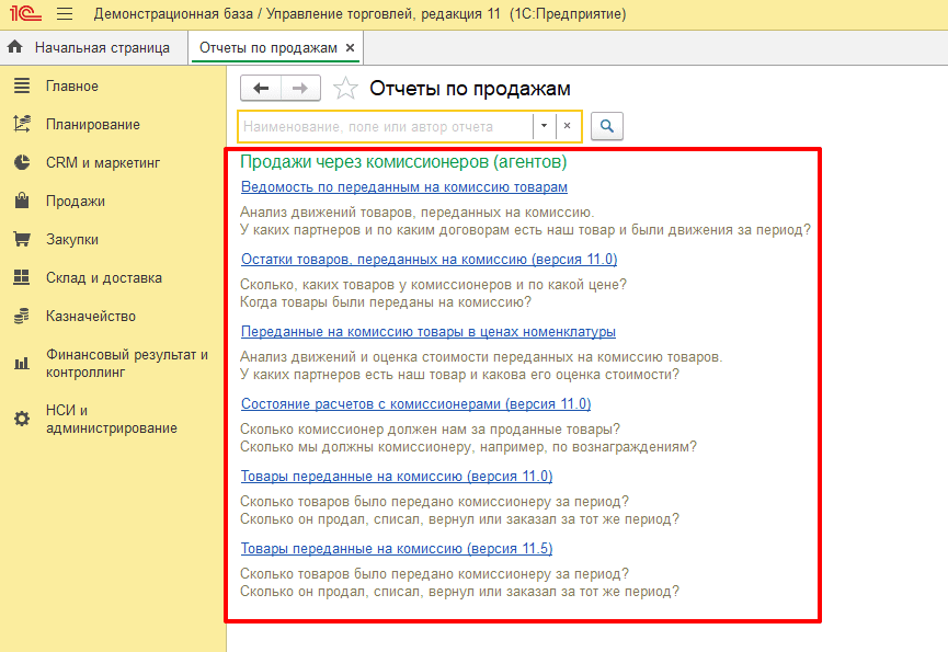 Для анализа комиссионных продаж есть несколько отчетов в разделе Продажи.