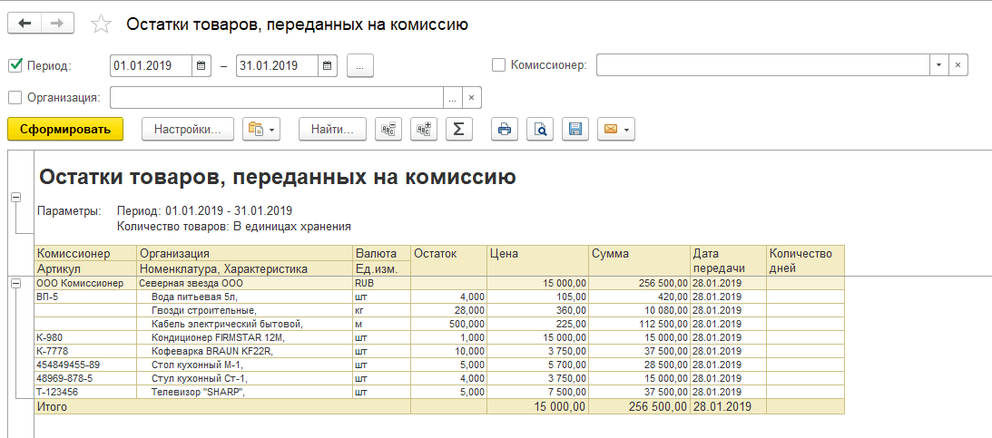 Отчет Остатки товаров, переданных на комиссию.