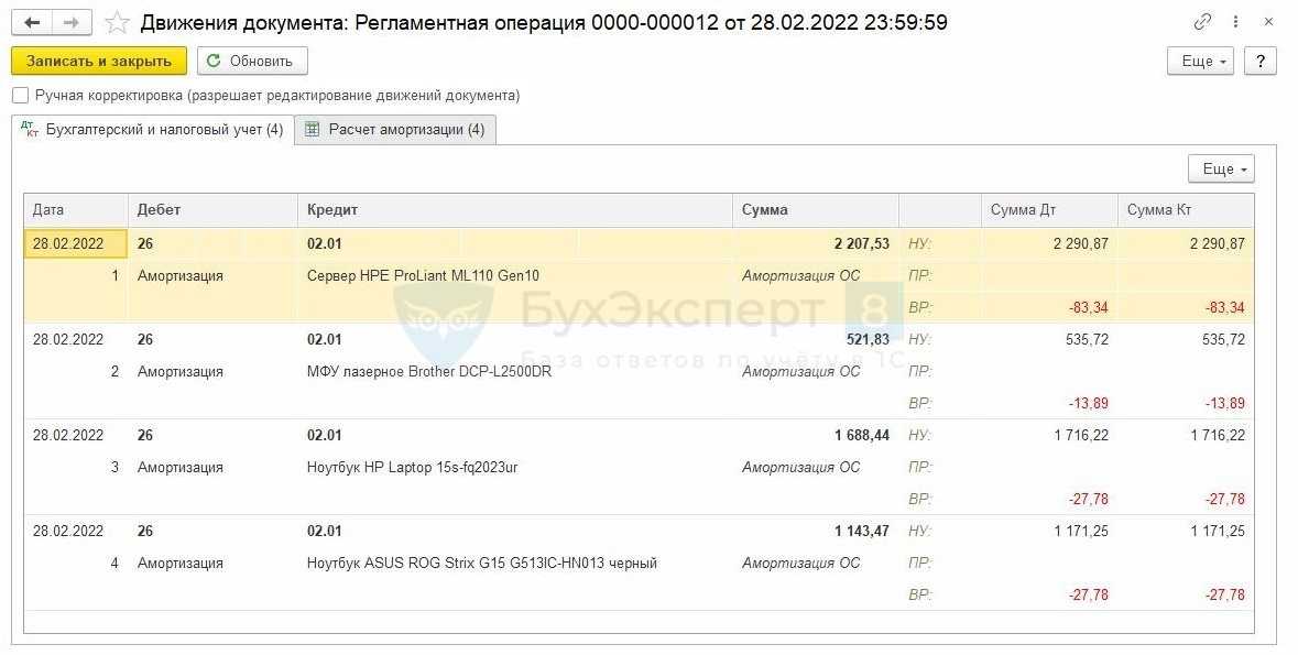 Амортизацию, как правило, выполняют однажды в конце месяца.