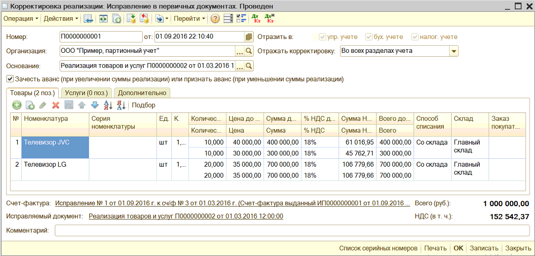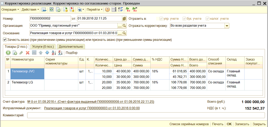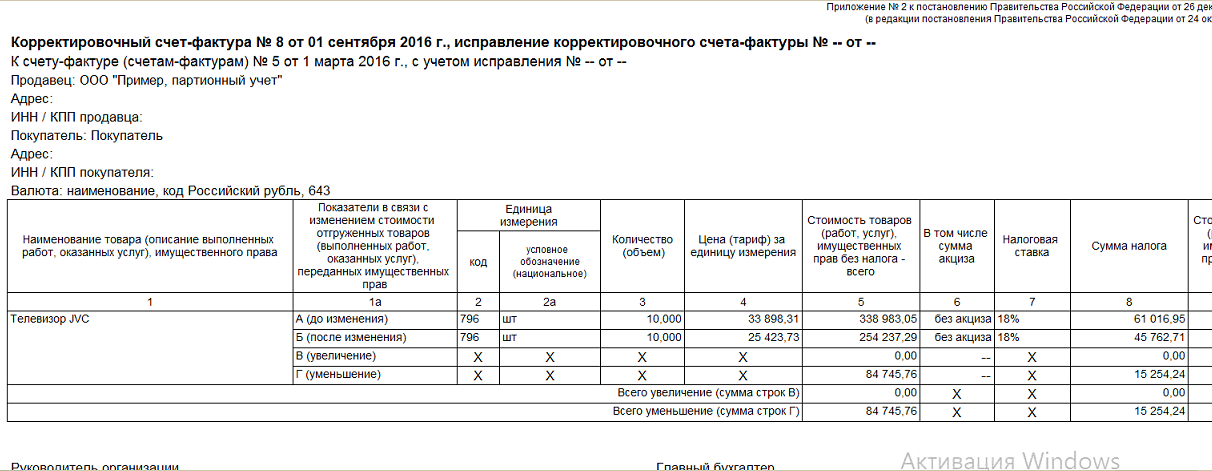 Итак, если в текущем периоде были произведены изменения в стоимости услуг, товаров или прав имущественного вида, либо их количества, то одного составления корректирующего счета будет полностью достаточно.