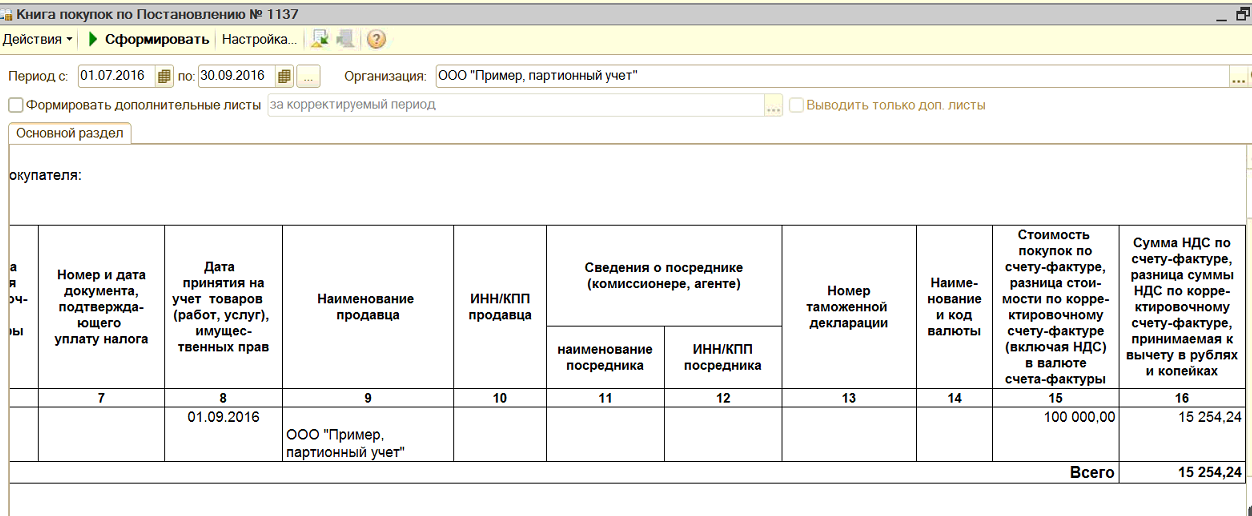 Проводим документы по регистрам НДС и формируем книгу покупок за период корректировки: