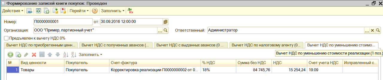 1.2. Корректировка реализации с предъявлением НДС в книге покупок