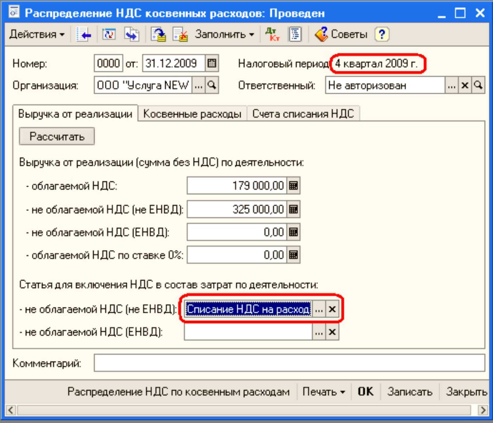 Здесь программа вне зависимости от выбора пользователя будет списывать уже распределенный НДС на те счета, куда ранее были списаны затраты