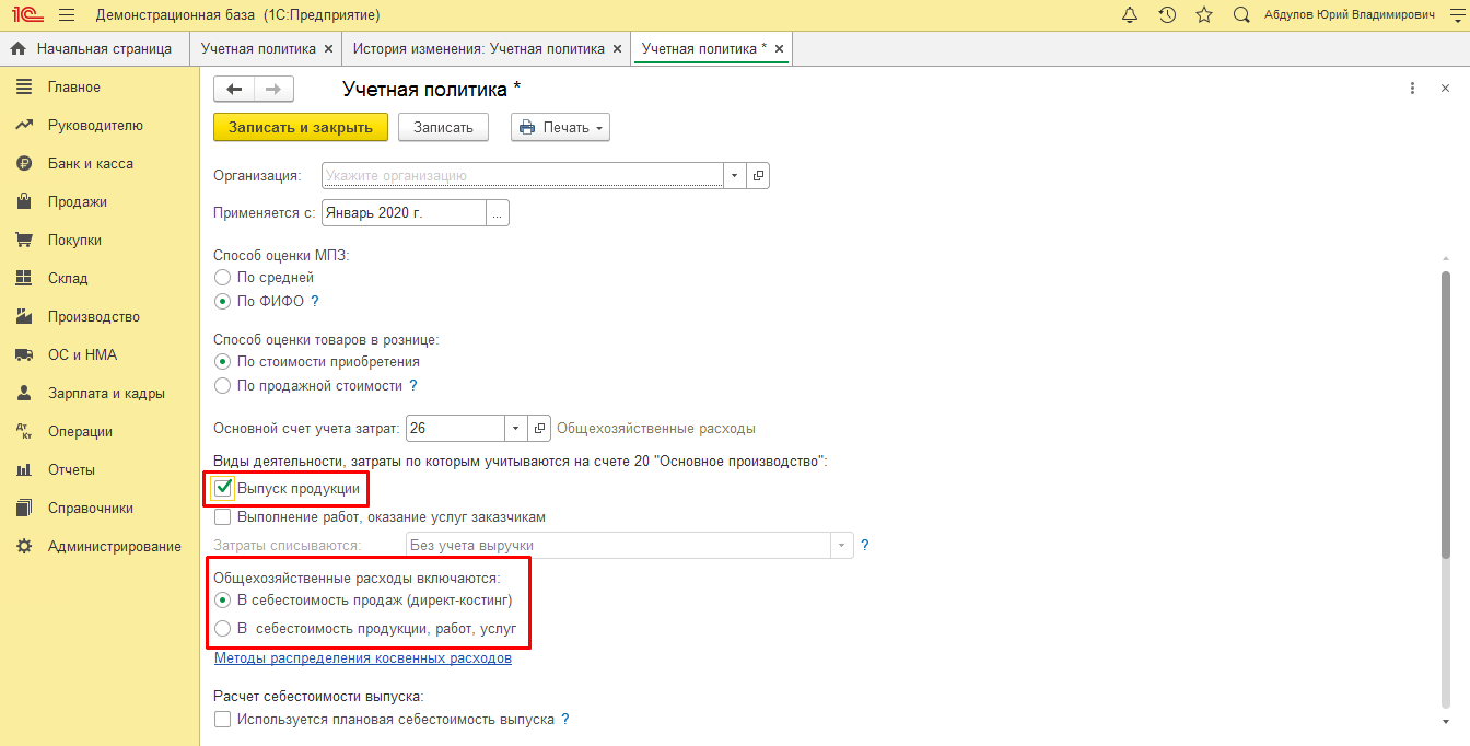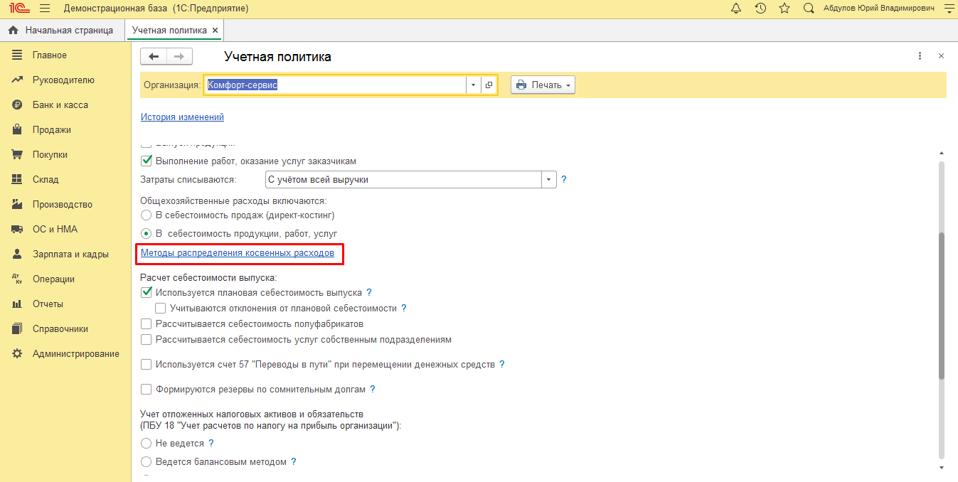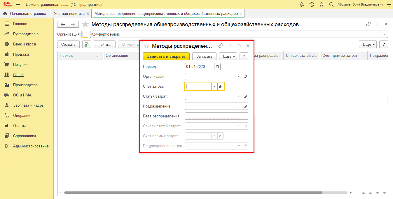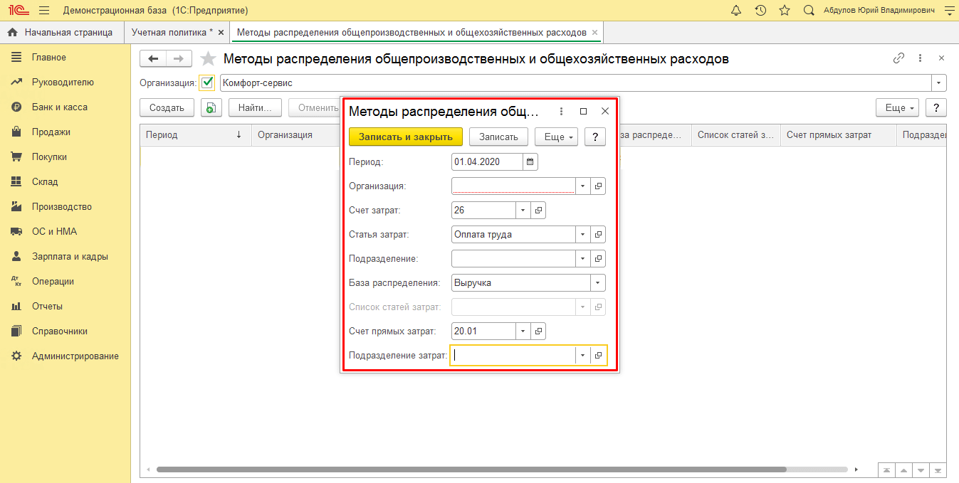 Методы распределения общепроизводственных расходов в 1С 8.3 на примере