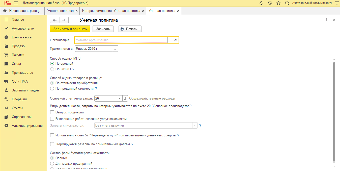 Рекомендации по использованию нового способа оценки МПЗ в программе 1С 8.3 Бухгалтерия