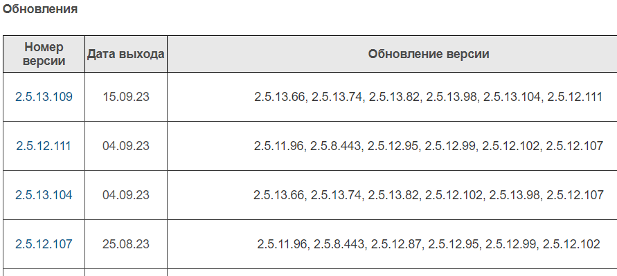Для получения файлов обновления необходимо кликнуть на название конфигурации в списке. И в открывшемся окне будет перечень всех доступных релизов.