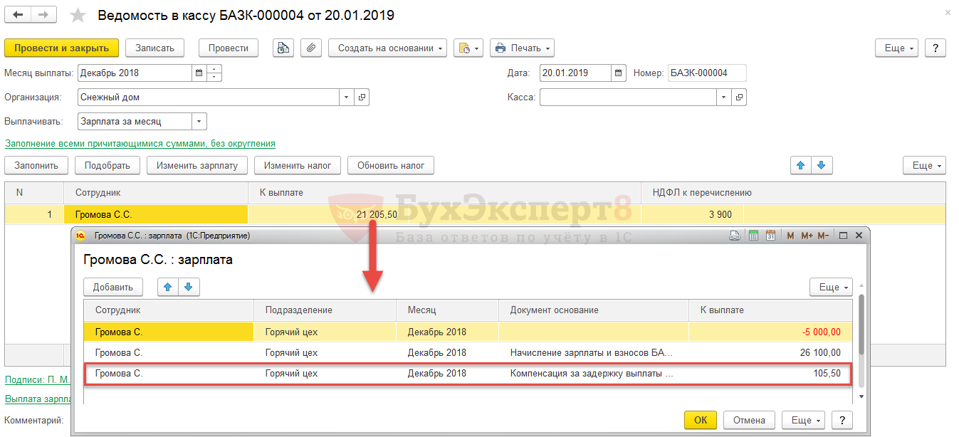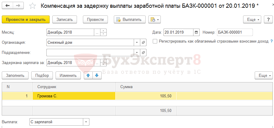 Как заполнить данные о компенсации за задержку зарплаты в программе 1СЗарплата и Управление Персоналом 8?