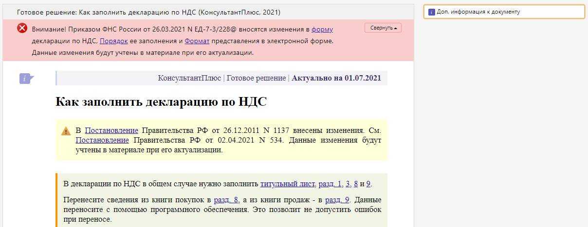 Проблема с другим разделом? Бесплатно используйте готовое решение от КонсультантПлюс. Эксперты разобрали, как заполнять каждый раздел декларации по НДС.