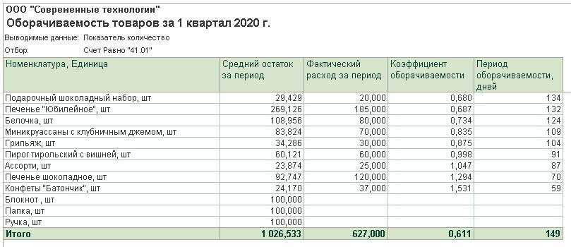 Показатели оборачиваемости товаров в 1С:Бухгалтерии 8