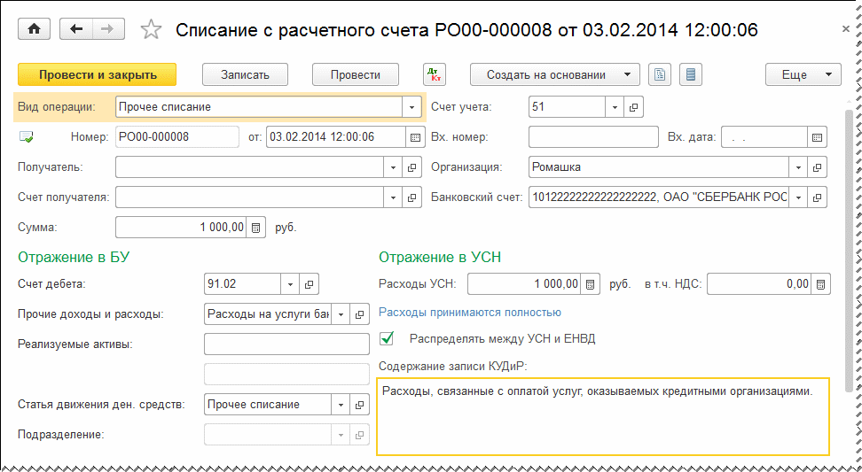 . Что касается расходов на услуги банка, то для целей бухгалтерского учета они списываются сразу же при проведении документаСписание с расчетного счета