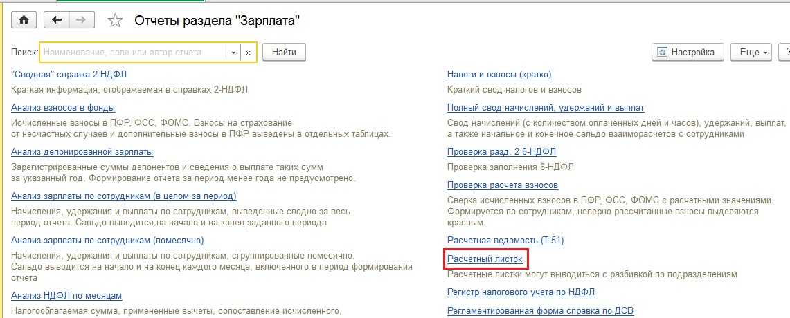 Проводим и закрываем файл. Для проверки создаем лист расчета. Переходим в меню «Зарплата и кадры», после в «Зарплата», далее в «Отчеты по заработной плате». Кликаем на строку «Расчетный листок».