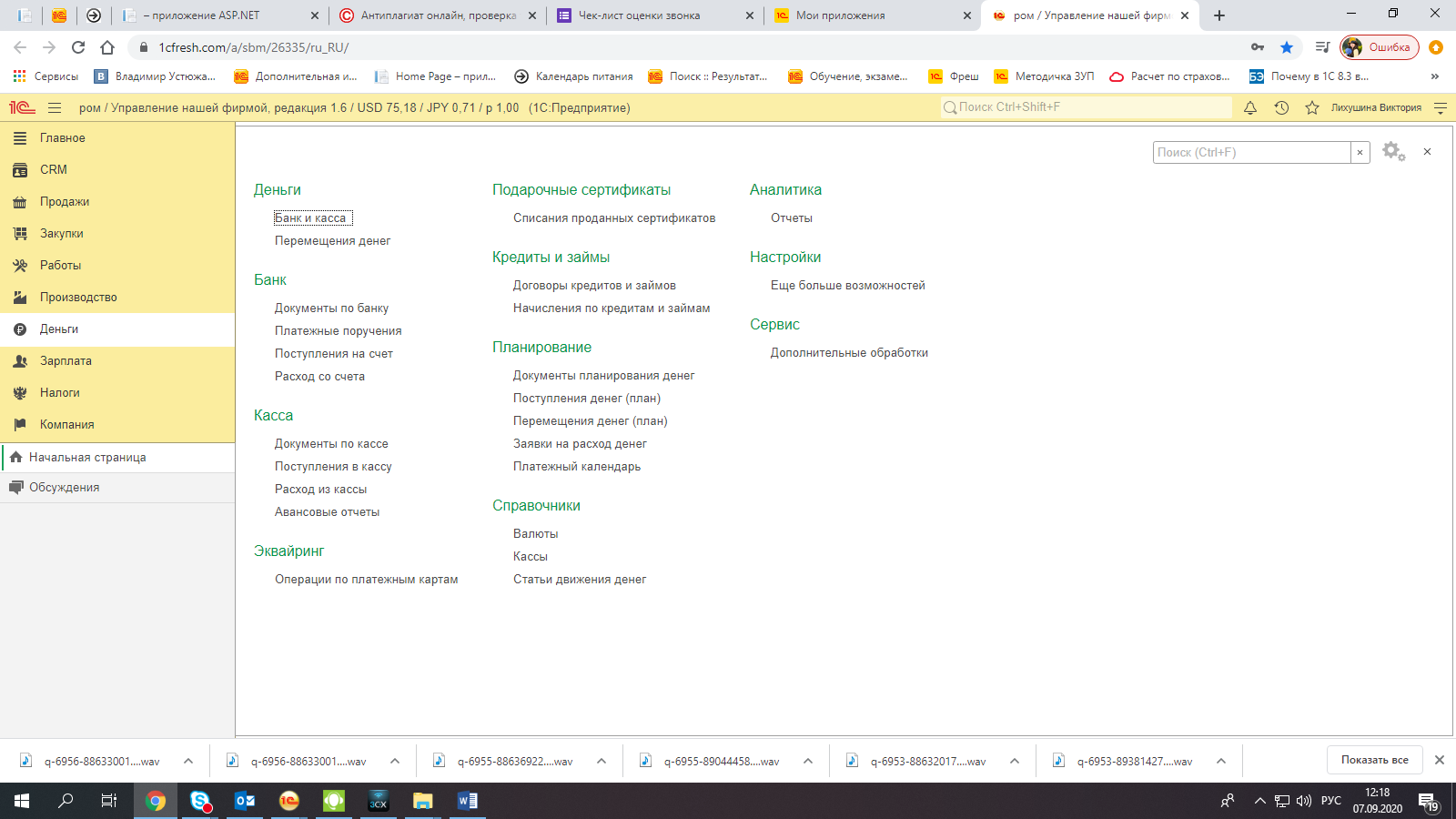Данный раздел собрал в себя все хозяйственные операции, связанные с движением денежных средств. Удобная навигация и большой перечень функций облегчат пользователю учет и планирование денежных потоков в фирме.