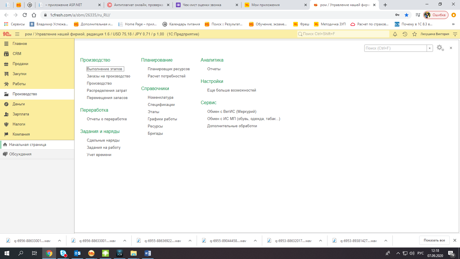 Планирование ресурсов и расчет потребности изготовленной продукции, а также осуществление типовых операций по заказам на производство и распределению затрат, оформлению сдельных нарядов и заданий на работу, осуществлено в разделе «Производство».