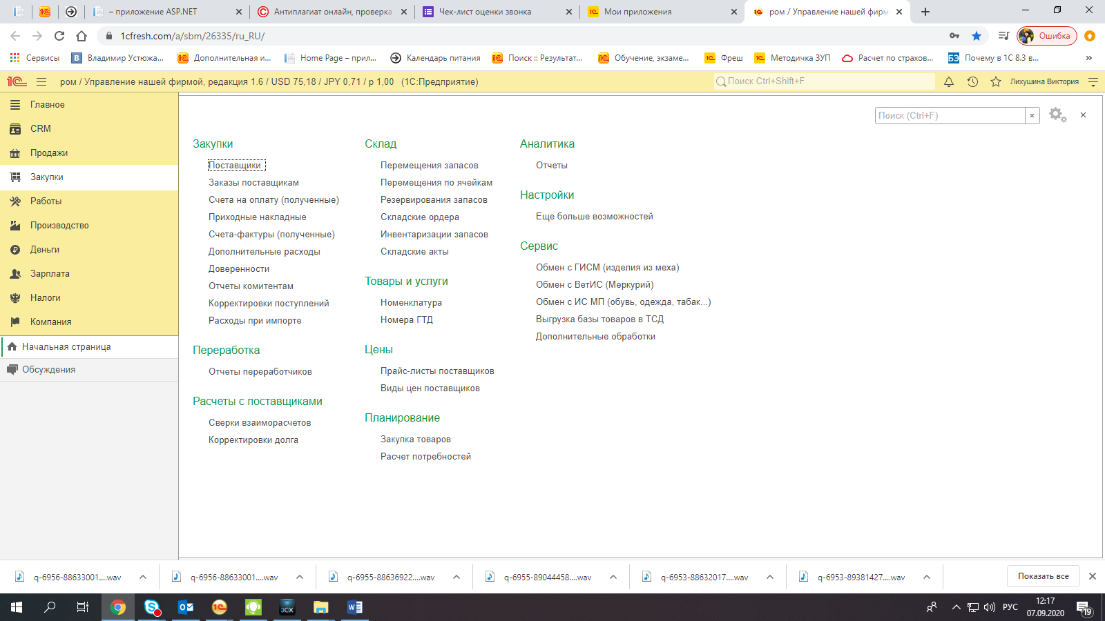 В разделе «Закупки» формируются заказы, счета на оплату, а также выписка необходимых подтверждающих документов при взаимоотношениях с поставщиками. В том числе учет расходов при импорте.
