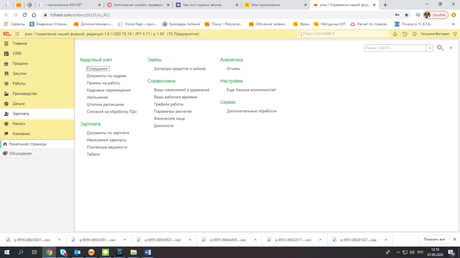 В данном разделе предусмотрено ведение кадрового учета, расчета и выплаты заработной платы, учет договоров кредита и займа сотрудникам.