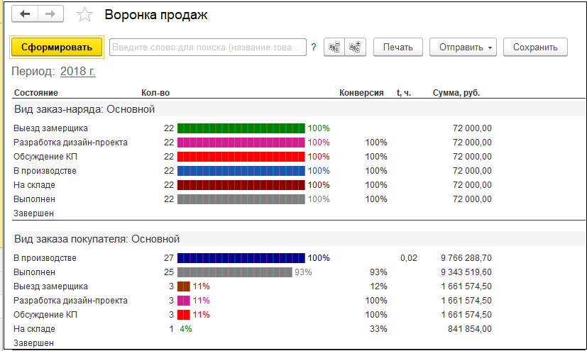 Встроенный механизм «Воронка продаж» позволяет выполнить анализ продаж.