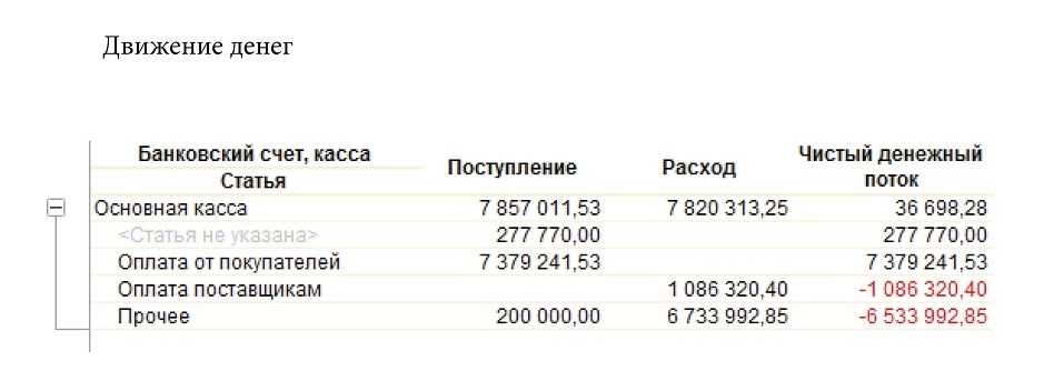 Второй вид отчета «Отчета о движении денежных средств» — движение денег.