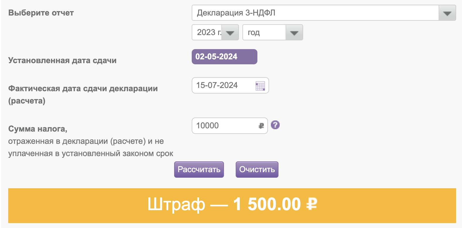 Рассчитать штраф можно на сайте.