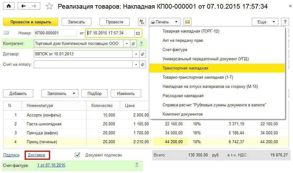 Как сделать ТТН в 1С 8.3 Бухгалтерия и где она находится