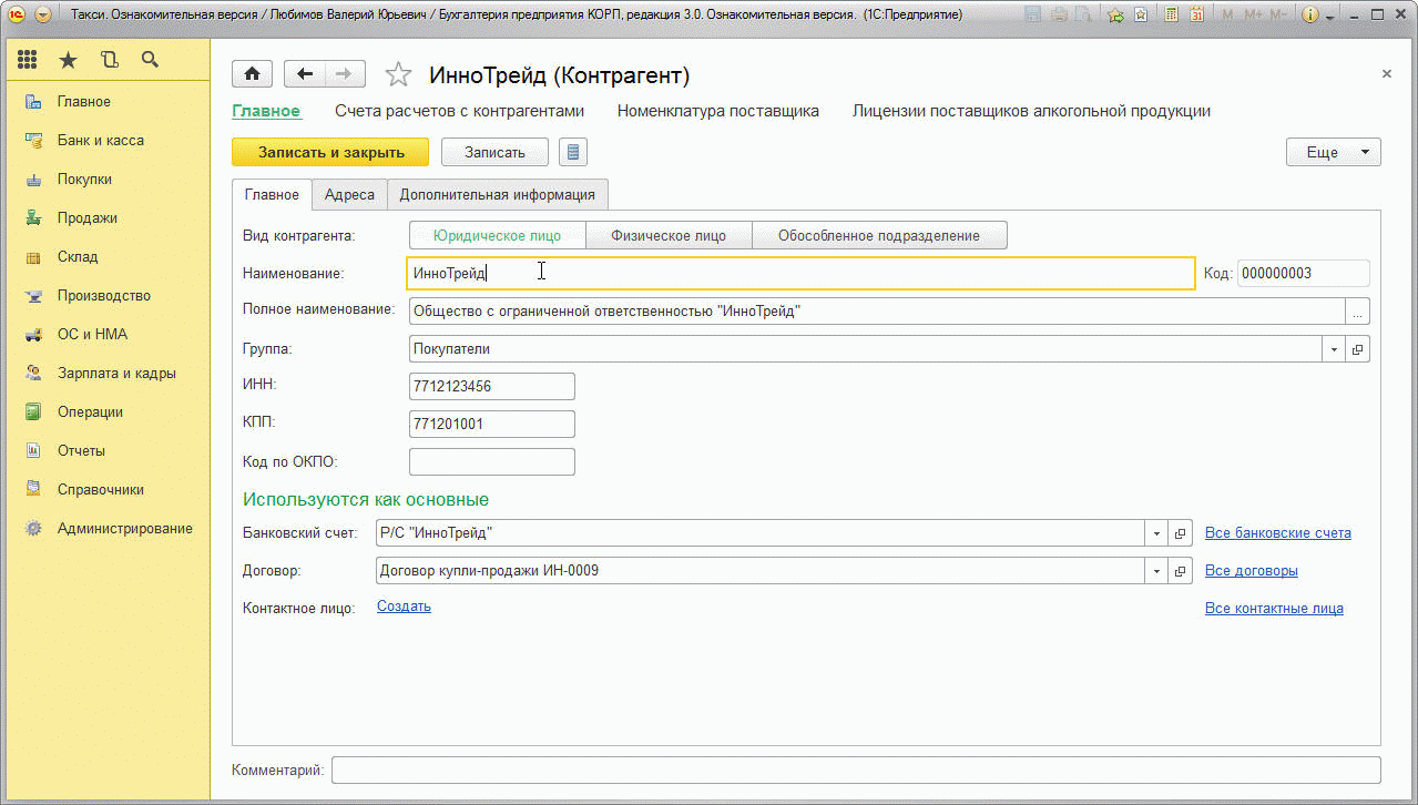 Представленная версия программного продукта (8.3) дает возможность осуществлять детальный учет фактического и документального передвижения продуктов (получение и отправка товаров), а также используется для оперативного управления организациями, предприятиями, фирмами, отличающимися различной специализацией и масштабами производства (реализации).
