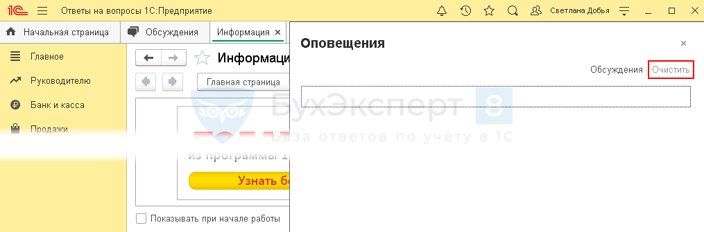 Реализована возможность в форме оповещения скрыть все уведомления одним нажатием по специальной кнопке Очистить.