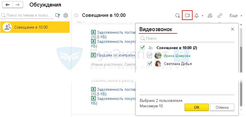 Видеозвонок в обсуждении