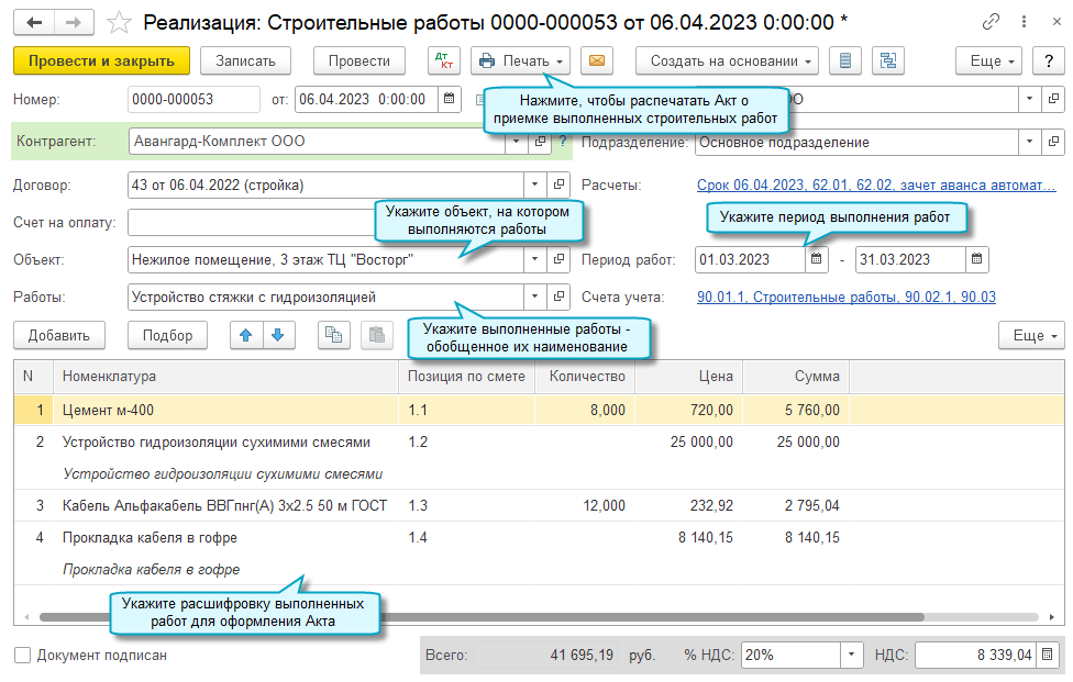 - кнопки Перечитать, Пометить на удаление/Снять пометку, Отменить проведение недоступны в формах нового объекта; PDF