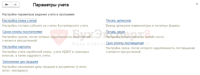 Настройка параметров учета в 1С 8.3 Бухгалтерия 3.0