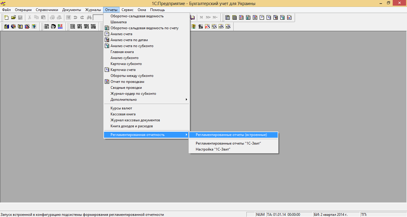 1. В Меню «Отчеты» выбрать «Регламентированные»