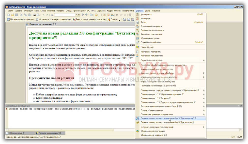 Перенос данных из 1С 7.7 в 1С 8.3 бухгалтерия 3.0