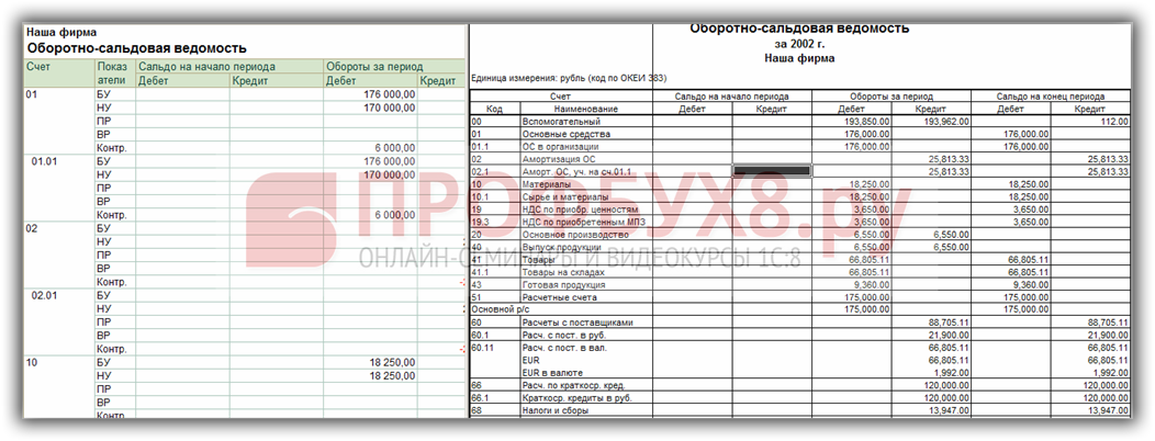 С помощью отчета Оборотно-сальдовая ведомость сформировать отчет с данными по субсчетам, видам учета, забалансовым счетам, валютам и сравнить с таким же отчетом из базы 1С 8.3 (8.2) в которую перенесли данные: