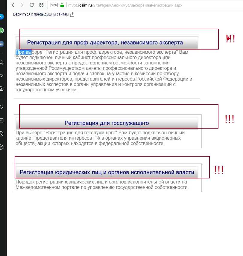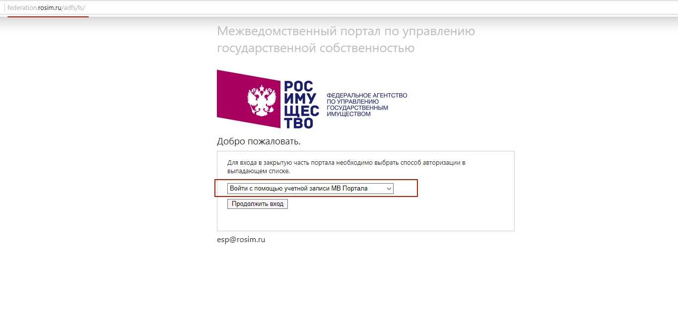 Регистрация на МВ портале Росимущество