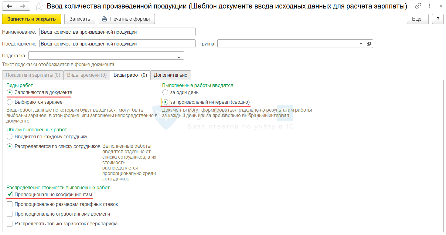 Обратите внимание! В разделе «Значения накапливаемых показателей» переключатель по умолчанию установлен в положение «По соответствию даты регистрации интервалу начисления». Данный способ используется только в том случае, если планируется регистрировать сдельную выработку по дням