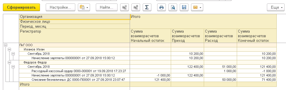 Если выбран пункт «Вводится по каждому сотруднику», ввод документа «Сдельные работы» будет осуществляться по каждому сотруднику.