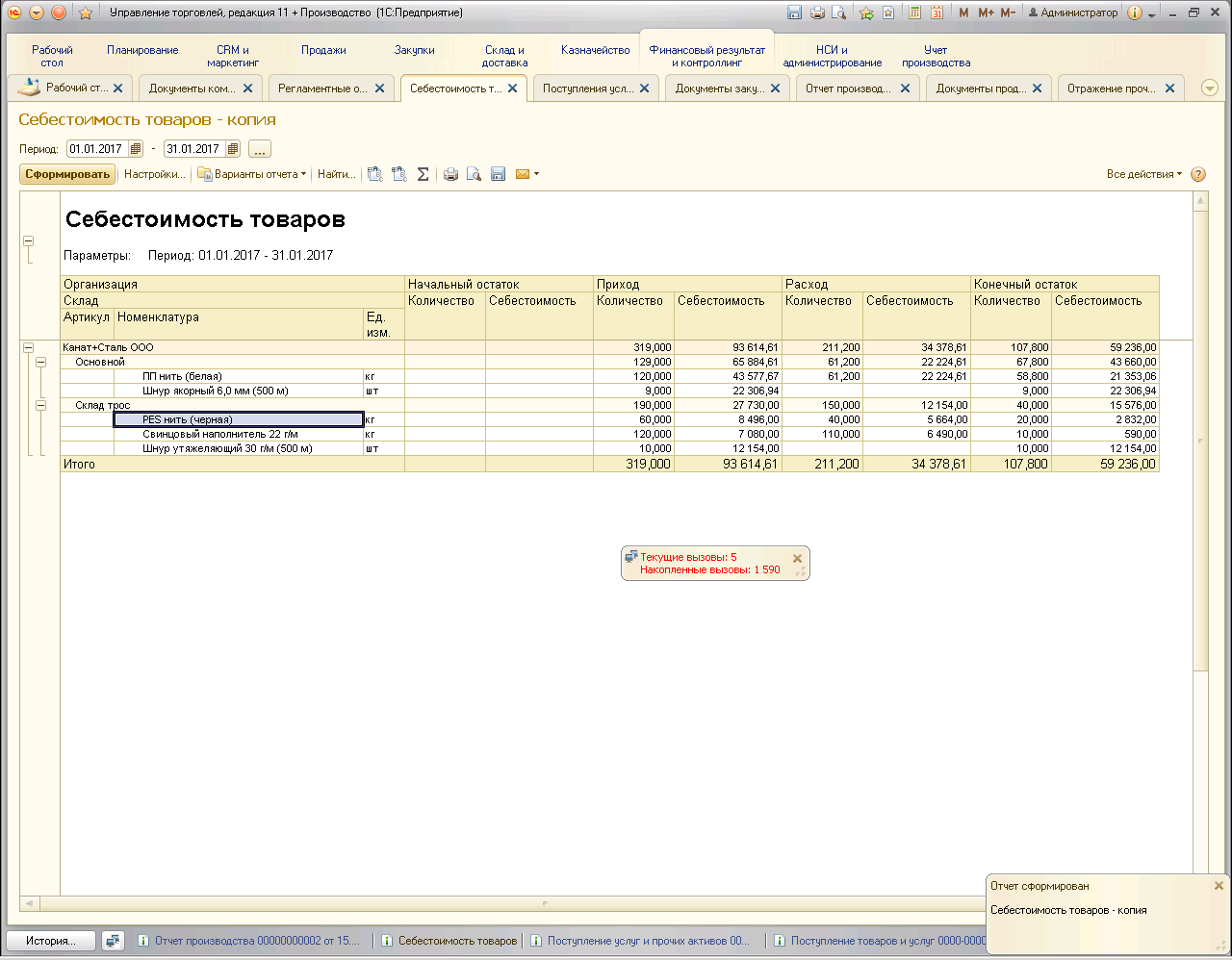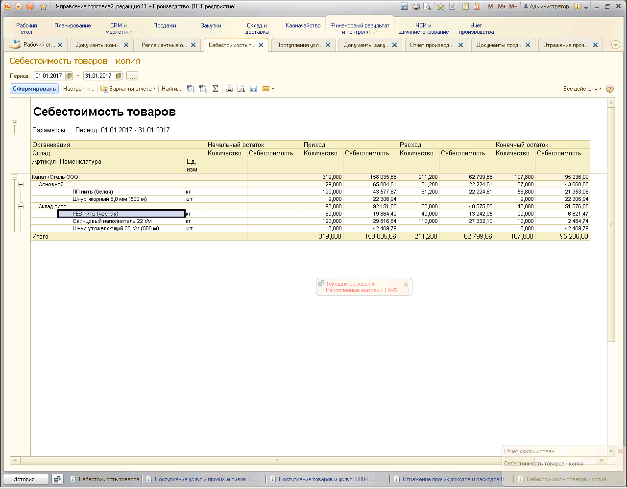Мы рассмотрели как сделать калькуляцию изделия в 1С. Теперь разберемся, какая себестоимость будет сформирована в 1С 8.3 при реализации продукции.