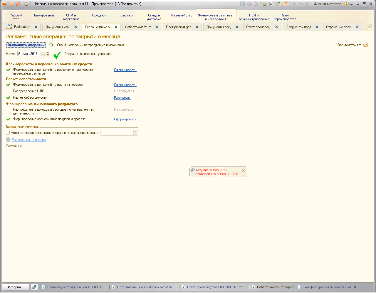 ). В этом случае программа сама «определит», какие регламентные операции необходимы, и проведет их в правильной последовательности. Выполнение происходит по кнопке «Выполнить закрытие месяца».