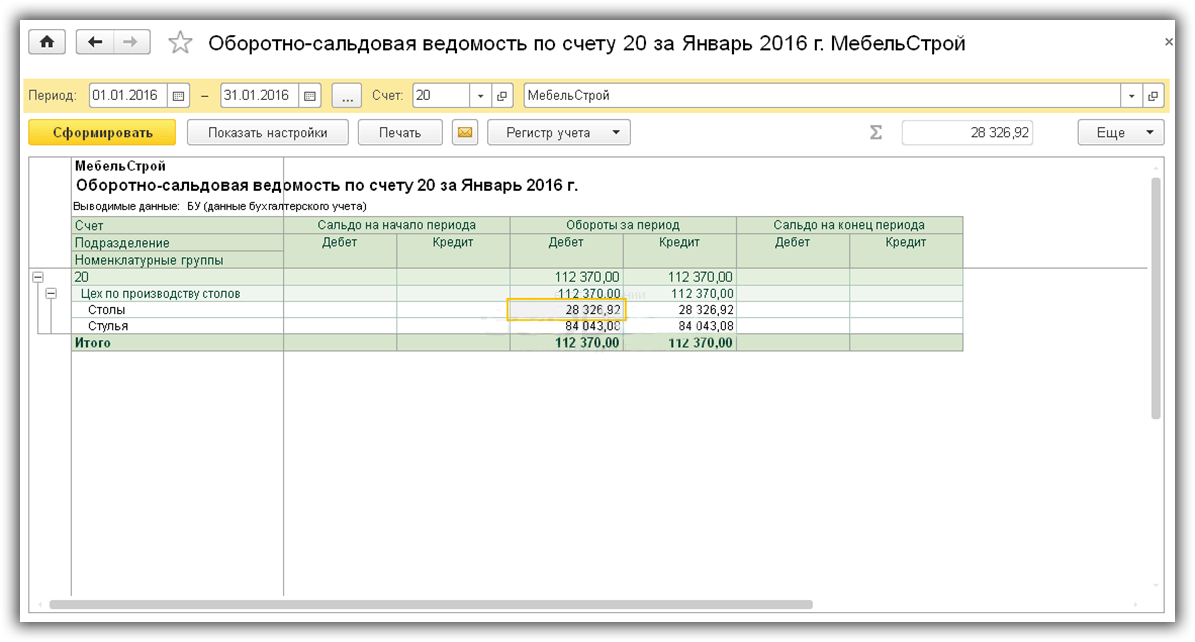 Проверить можно по оборотно-сальдовой ведомости по 20 счету(рис.8).