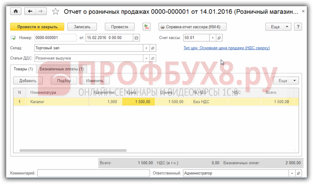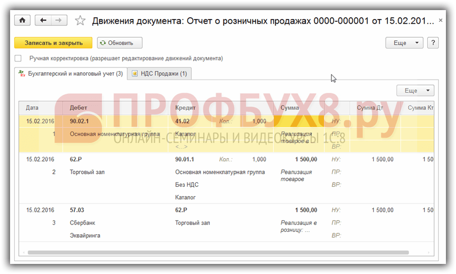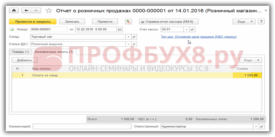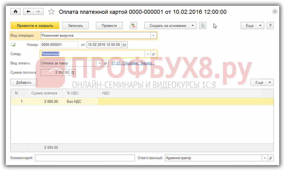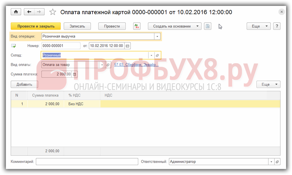 Шаг 3. Учет эквайринга в 1С 8.3 при розничной торговле