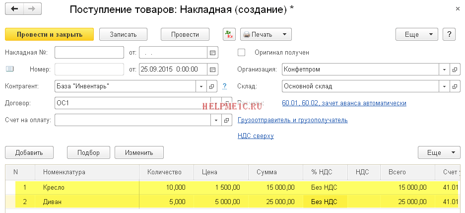 Реализация товаров, доставка включена в стоимость товара в 1С