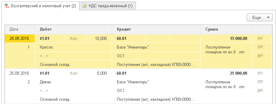 Ведомость по партиям товаров на складах 1С — доп расходы по партиям