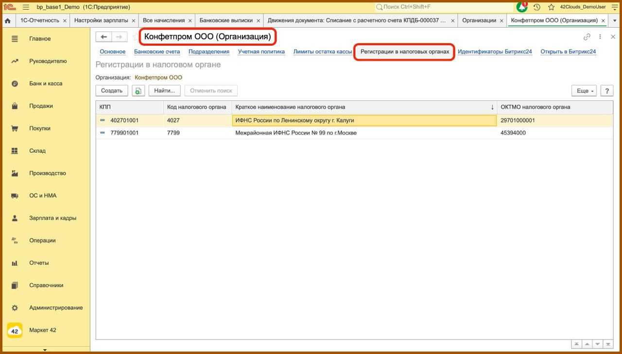 Если вы увидите две записи, с одним и тем же кодом налогового органа и КПП, то, скорее всего, у вас задвоилась налоговая. Это может произойти при синхронизации программы 1С: Бухгалтерия с другими базами 1С. Вам нужно избавиться от лишней информации. Для этого:
