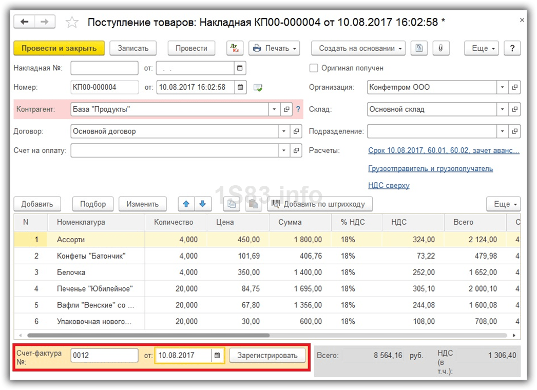 Самым первым документом в цепочке по отражению НДС в 1С 8.3 в нашем случае будет являться .