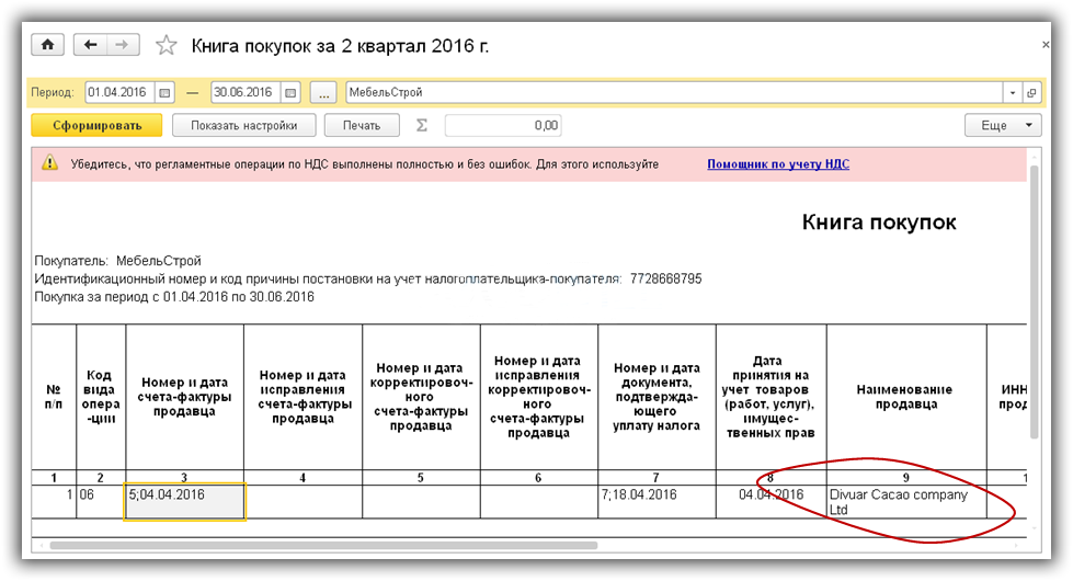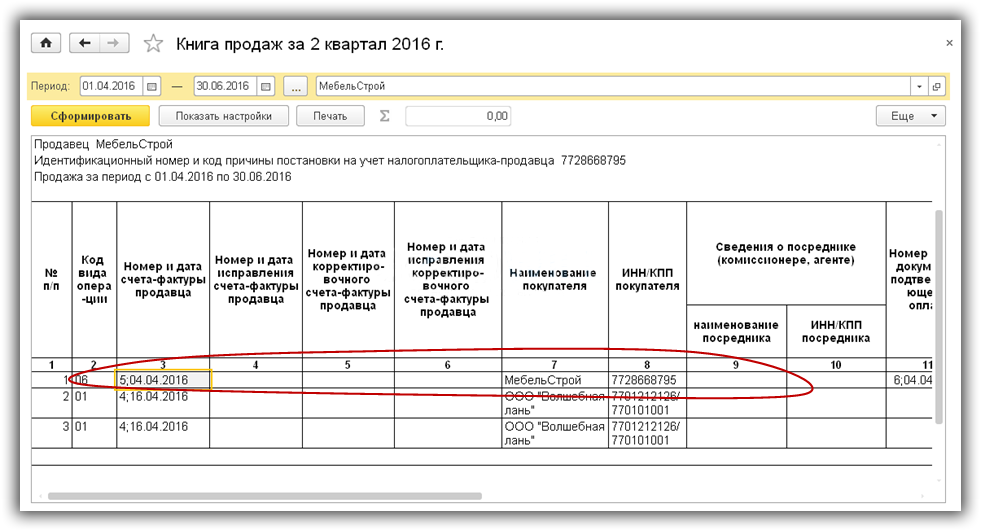 В колонке «Наименование продавца» фигурирует не агент, а сам продавец (рис.14).