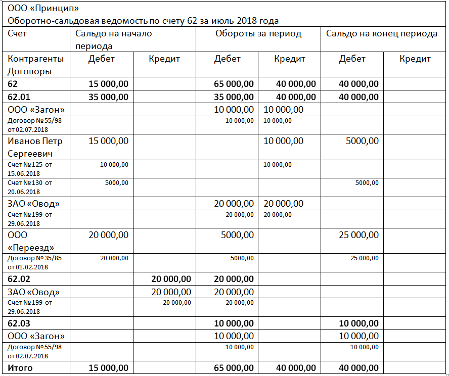 Как составить оборотно-сальдовую ведомость по счету 62?
