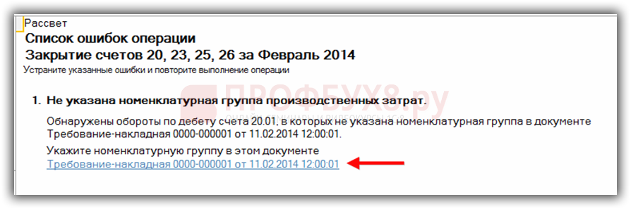 В случае обнаружения каких-либо ошибок в учете программа 1С 8.3 выдаст информационное сообщение о содержании ошибки и документе, в котором она сделана: