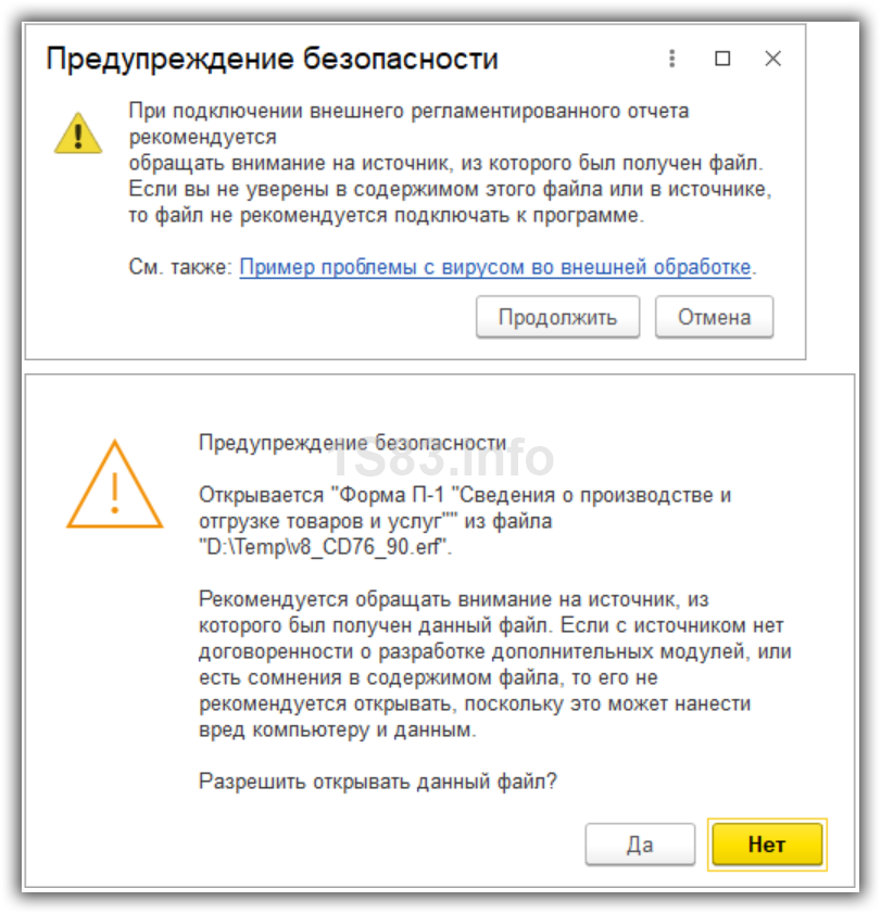 2.0.ПРИМЕЧАНИЕ. Внешняя обработка (отчет), открываемые с помощью меню Файл – Открыть, будут исполняться в безопасном режиме, если у пользователя отсутствуют административные права доступа.